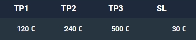 Jusqu'à 3 seuils de prises de profit (Take Profit) : TP1, TP2 et TP3.